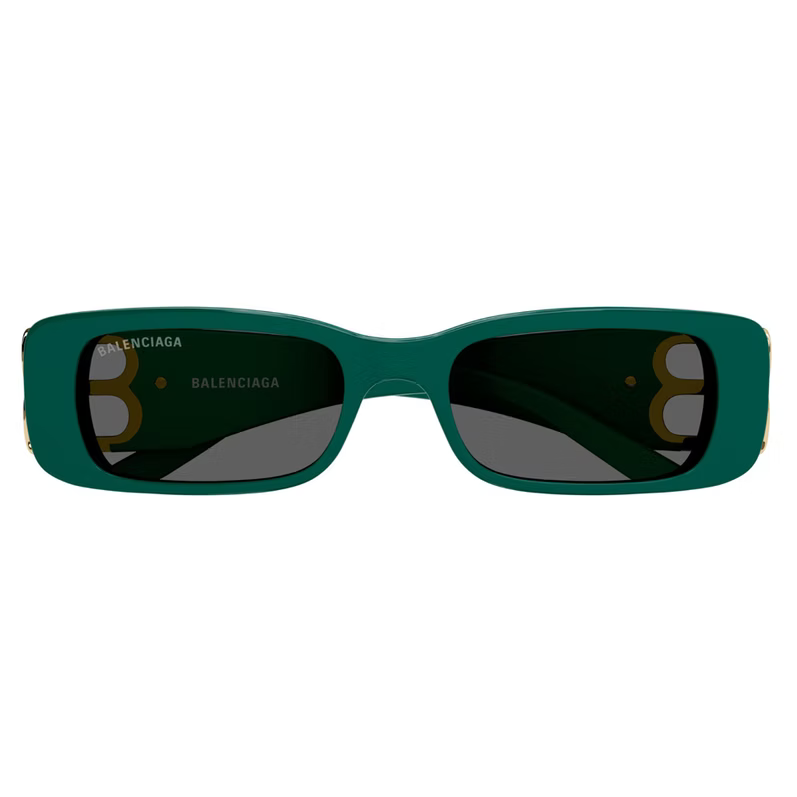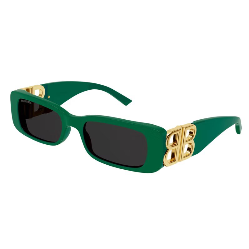 Vintage-inspired sinuous oval shape in acetate with statement symmetrically folding BB golden hinges. Available in classic colors or 80's inspired color combinations. Balenciaga logo lasered on right lens.