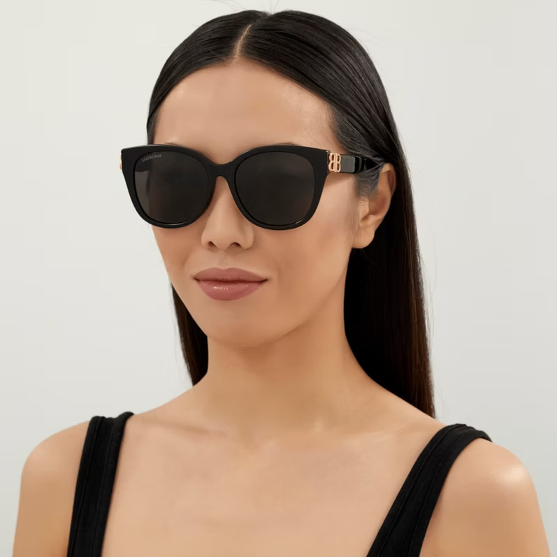 So named for its reference to the 1980s opulent aesthetic. Cat vintage inspired frames. Symmetrically folding BB logo golden hinges that separate tapering arms. Classic black and havana, seasonal milky purple and pink color combinations.